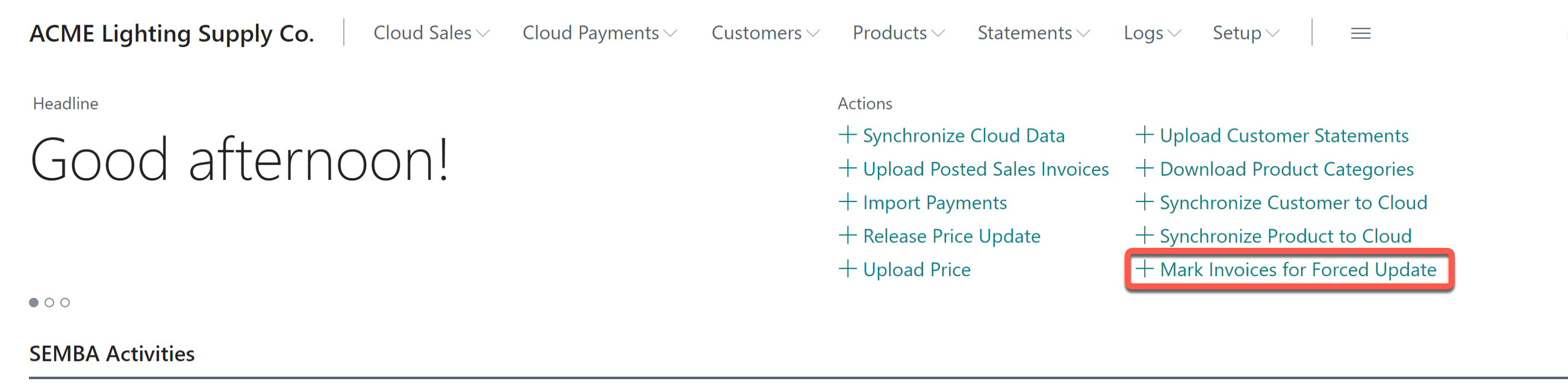Mark Invoices for Forced Update handles exceptions and errors related to the posted sales invoice uploads. If a sales invoice needs to be uploaded again, this process marks the invoice for a reupload.