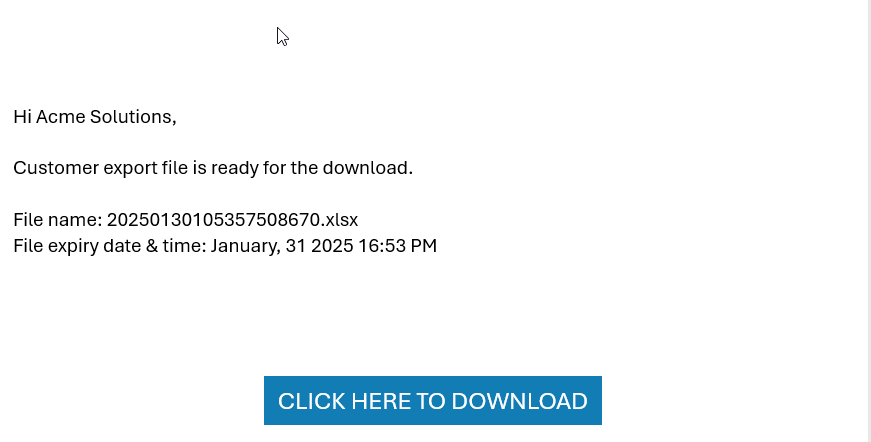 - Download Selected: You have the option to download the selected customer data in two formats: Excel or JSON. Once the file is prepared, you will receive an email notification to let you know it’s ready for download.