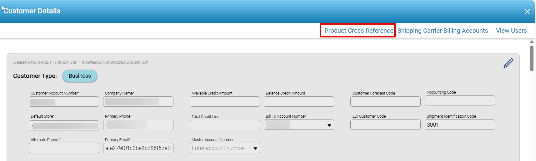 - The Customer Shipping Carrier Billing Accounts section manages and stores information related to the shipping and billing accounts associated with various carriers. This is essential for accurate billing, shipping logistics, and record-keeping.