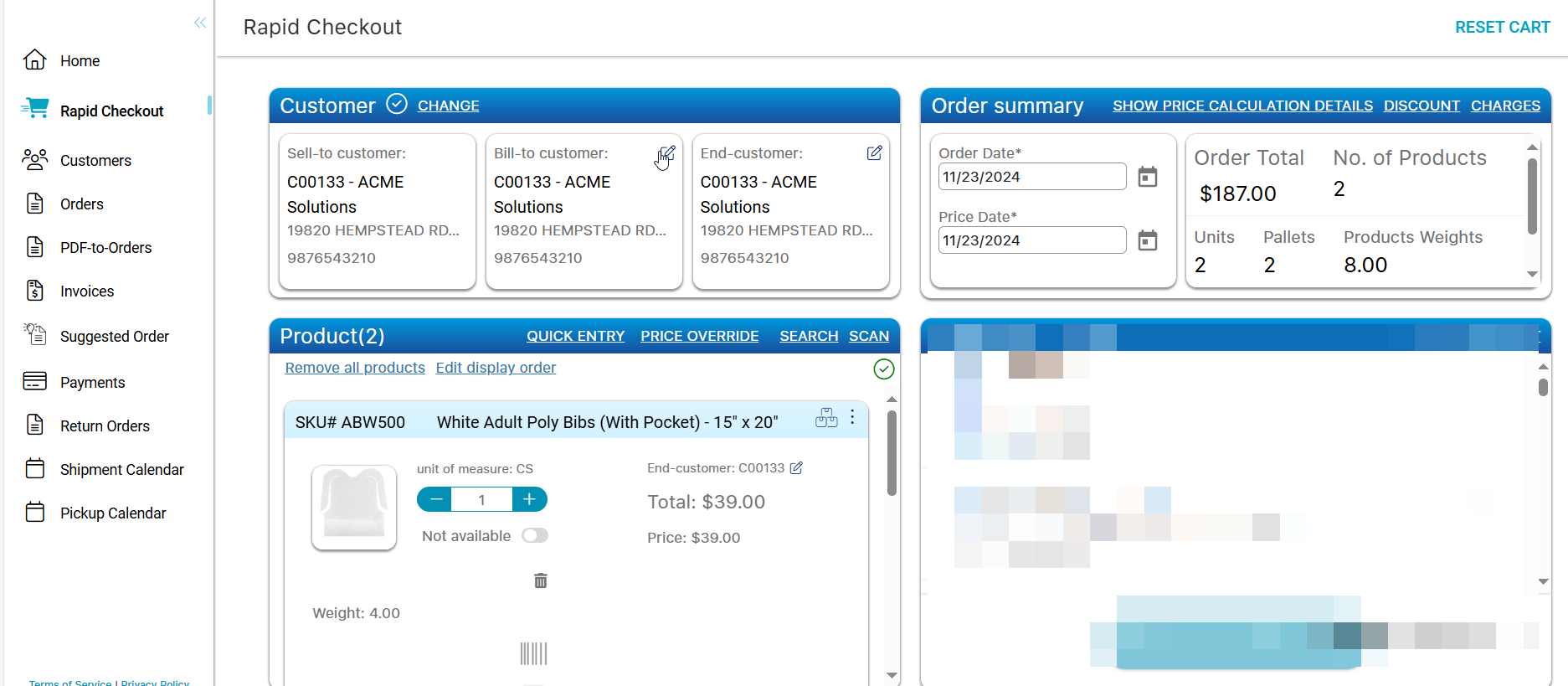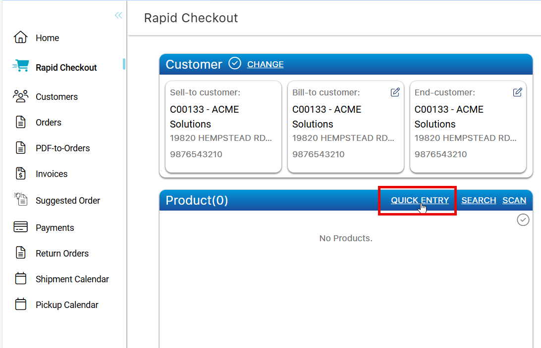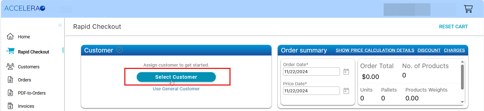 Go to the Rapid Checkout page, where you can efficiently create and process orders with minimal steps.