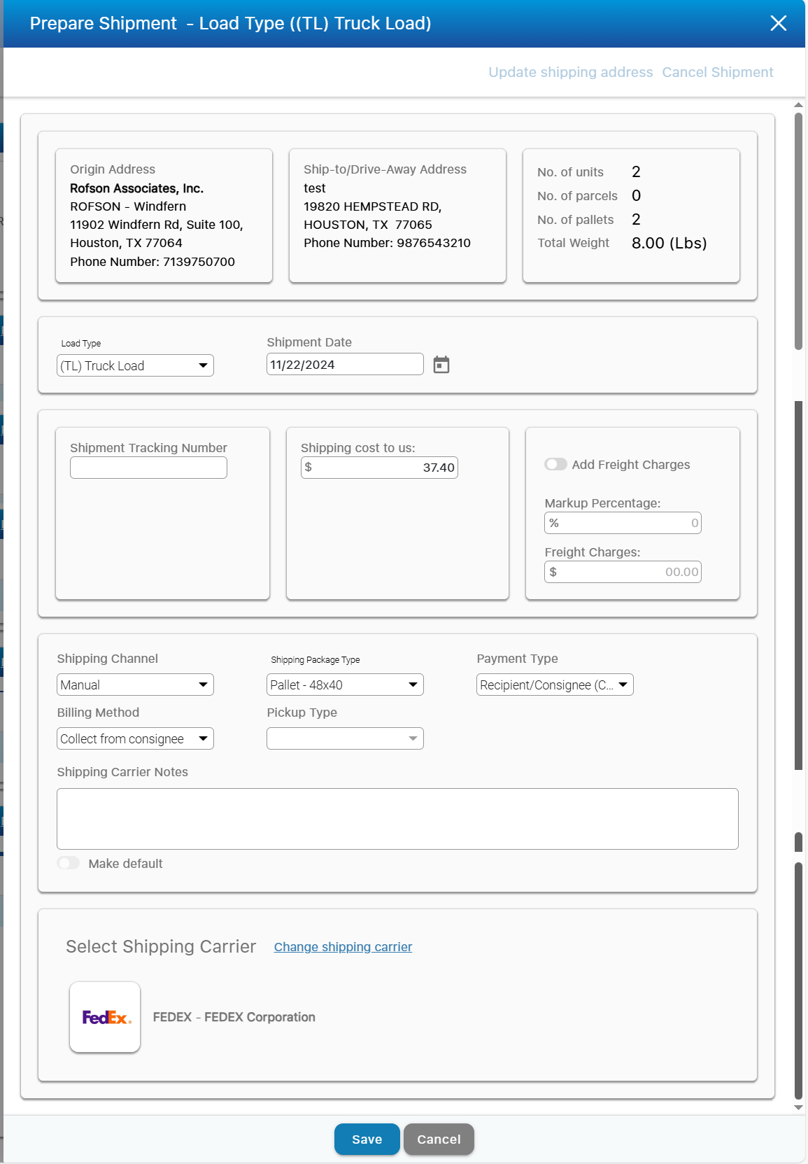 - Carrier & Tracking Number: Allows users to enter the carrier's name and tracking number, making it easier to monitor the shipment's progress.