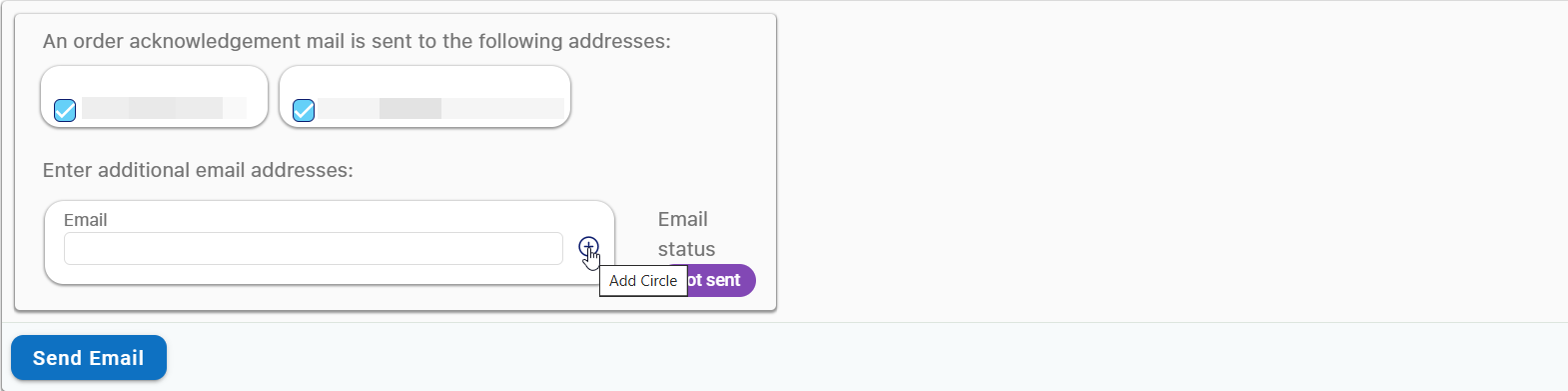 - Provides a field for users to add additional email addresses. This is useful for sharing order details with multiple stakeholders.