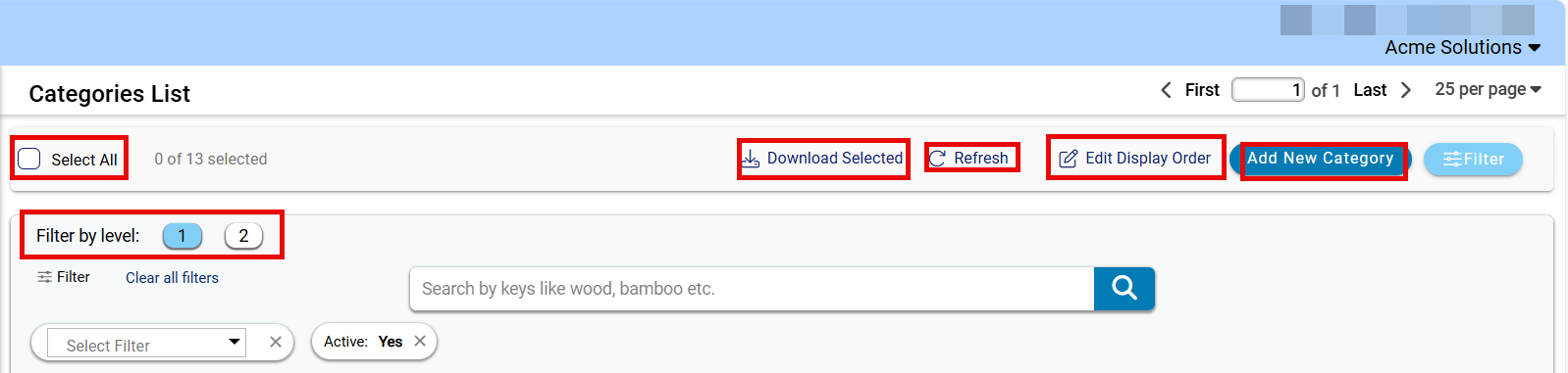 - Select All: The “Select All” checkbox is designed for bulk selection, allowing users to manage multiple categories simultaneously. Once selected, users can perform actions on all chosen categories at once, improving workflow efficiency. This feature is particularly useful when applying mass updates, exporting data, or deleting multiple entries. The checkbox remains unchecked by default, ensuring that users explicitly select the items they wish to manage.