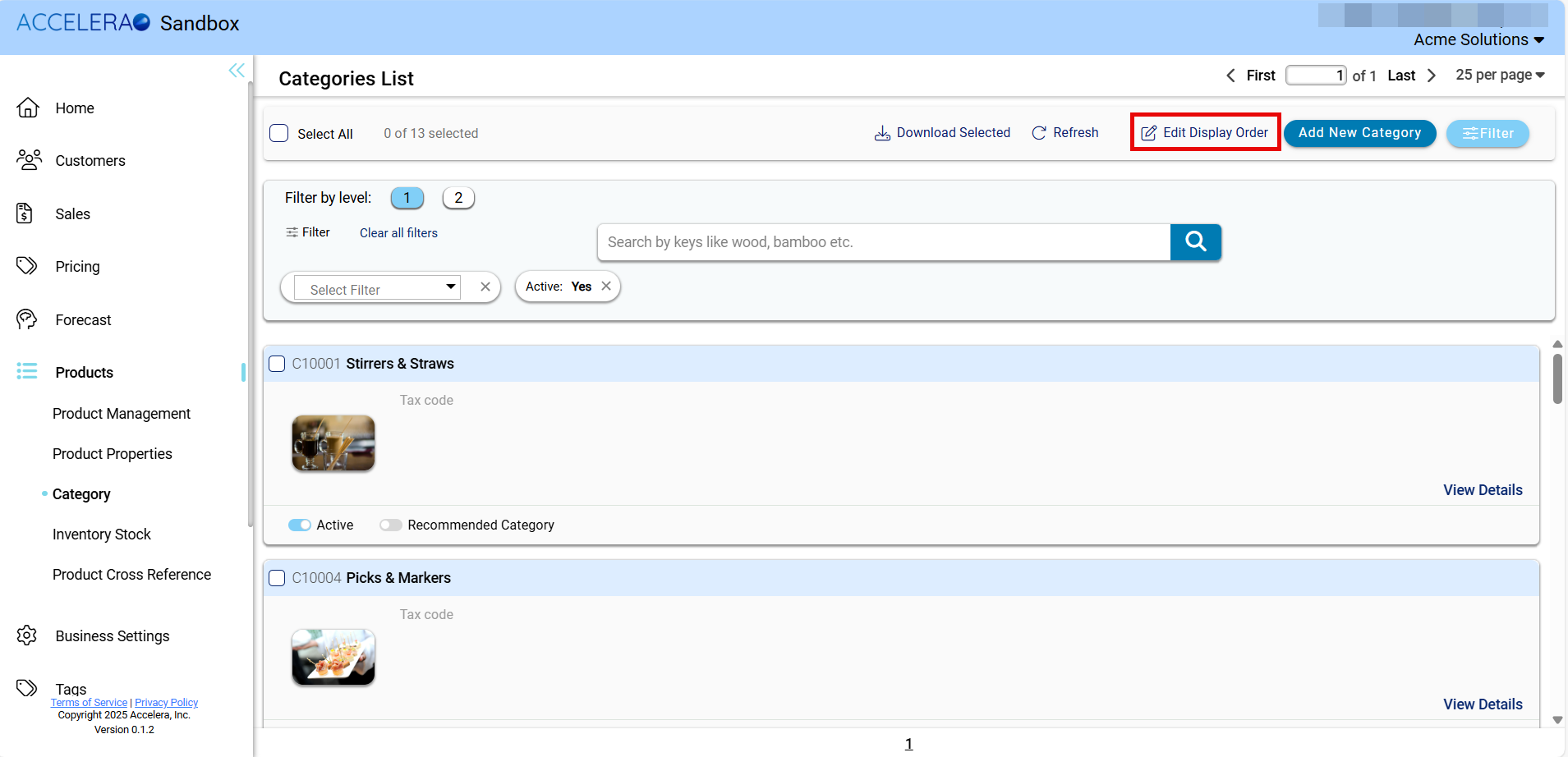 - Click on Category under Products Action