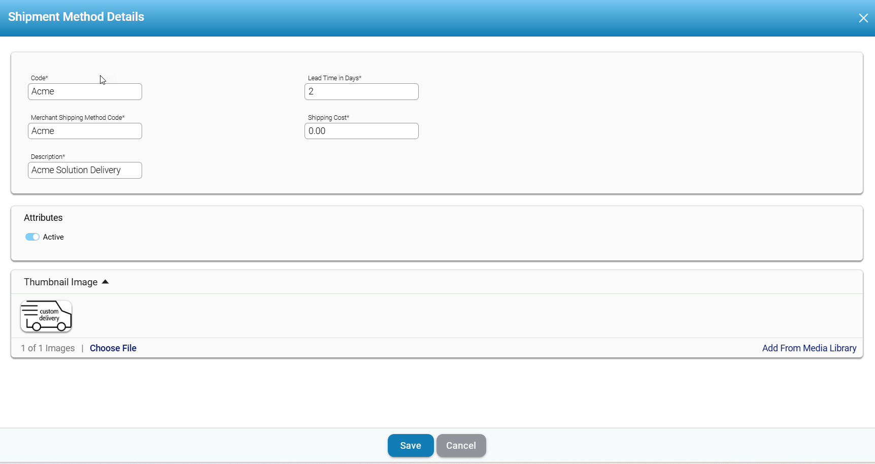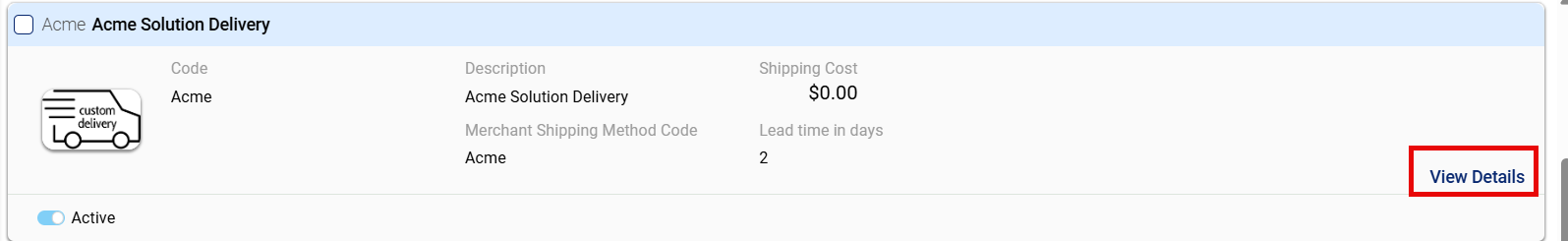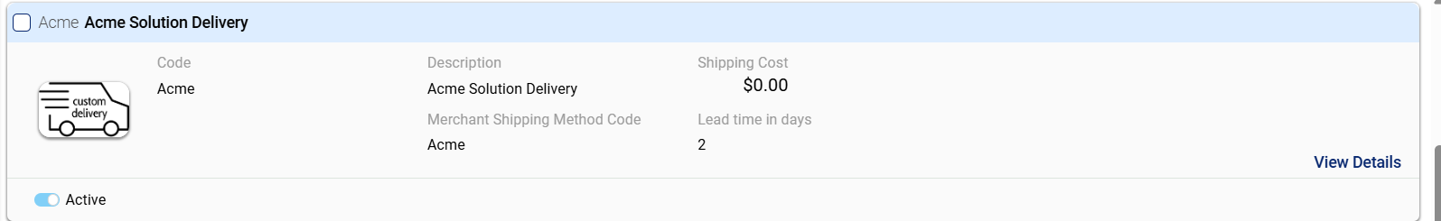 - Active Status Toggle: The active status toggle indicates whether the shipment method is enabled. Switching it off deactivates the method from being used.