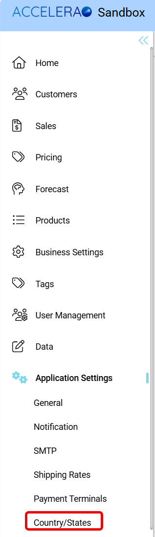 - Click on Country/States under Application Settings Action