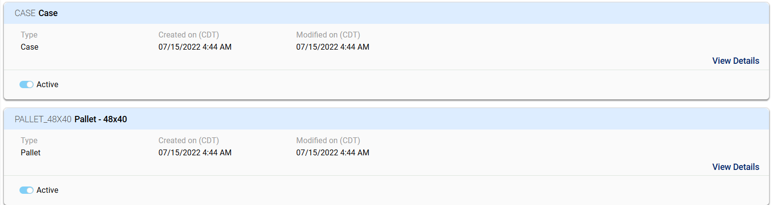 - Modified on (CDT): The Modified on field records the most recent date and time when any update was made to the package type entry. Like the creation timestamp, this field follows the Central Daylight Time (CDT) standard. It helps users monitor updates and track recent activity related to each packaging method. This field is critical for identifying when adjustments have been made to existing definitions, especially when multiple users manage records. It ensures that users are working with the most current version of the data.