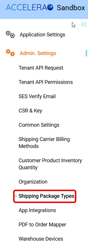 - Click on Shipping Package Types under Admin Settings Action