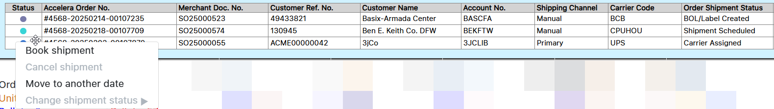 3. Context Menu Options for Shipment Orders (Right-Click Functions)