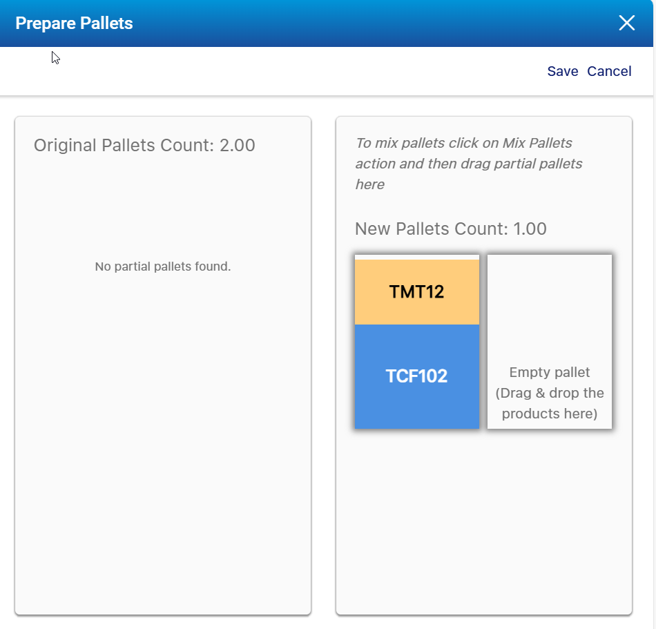 After you’ve organized and combined the pallets, click Save in the top right corner to confirm your pallet configuration.